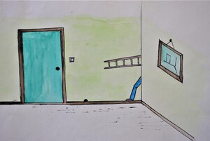 1973De klusjesman. Ingekleurde tekening. Thema 'gedeeltelijk zichtbaar'